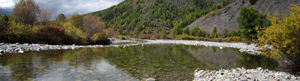 Etwas abseits zwischen den niedrigen Sträuchern, die schon ihr Herbstkleid angelegt haben und in Rot- und Gelb-Tönen leuchten, schlagen sie ihr Lager auf und bald steigt Rauch vom Gaskocher auf und es gibt heißes Wasser für Kaffee und Tee. Während ich meinen Kaffee aus dem Ikea Becher schlürfe und die warmen Strahlen der Sonne genieße, schweift mein Blick über den breiten Fluss, der vor uns eine Biegung macht und zwischen zwei steinigen Bergen verschwindet. Die Hänge spärlich geschmückt mit Sibirischen Birken und Lärchen. Vereinzelte Bäume leuchten schon goldgelb und bilden einen schönen Kontrast zum herbstlichen Rot des hohen Grases. Dazwischen immer wieder das Schwarz von verkohlten Baumstämmen.