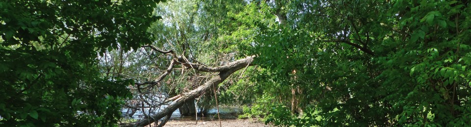 Man hat den Eindruck als wäre hier seit Jahren keine menschliche Seele mehr gewesen. So wild und der Natur überlassen erscheint einem diese Welt. Abgeschieden und doch nur ein paar Meter vom gepflegten Hochwasserdamm entfernt.
