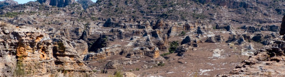 Als wir kurz darauf den Gipfel des Belohamena l’Isalo erreichen, werden wir mit einem traumhaften Ausblick über das Tal, das wir durchwandert haben, belohnt. Turm um Turm aus zerklüftetem Sandstein reiht sich unter uns auf. Ich bin komplett überfordert, was ich zuerst fotografieren soll, und gleichzeitig ist mir klar, dass ein Foto diesem Panorama nie gerecht werden wird. Schließlich sitze ich nur staunend am Rande des Abgrundes und lasse das Bild auf mich wirken.