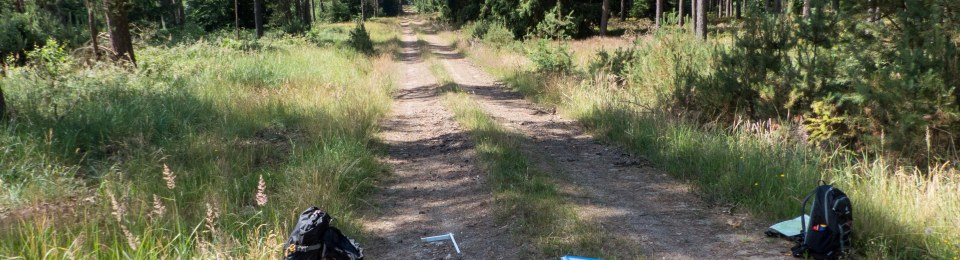 Rudolf, der ein paar Schritte vor mir auf der linken Seite geht, bleibt stehen und zeigt in die Mitte des Waldweges. Als ich näherkomme, kann ich es auch erkennen: Büschel von weißlichen Haaren, schon etwas platt, liegen locker verteilt mitten auf dem Weg. Dazwischen sind bleiche Knochenstückchen zu erkennen. Ich nicke zustimmend und nehme das GPS vom Gürtel. Nach drei Tagen in den Wäldern rund um die Lüneburger Heide sind wir ein eingespieltes Team: während ich den Punkt im GPS markiere, legt Rudolf schon den Zollstock neben unseren Fund. Ich mache ein Detailbild von oben und ein Übersichtsbild mit einem Stück vom Horizont, während er schon die Klemmmappe herausgeholt hat und die Daten im Dokumentationsblatt einträgt. Ich setze den Rucksack ab, packe die Tupperdose mit unserem SCAT-Kit aus. Wieder einen Plastikbeutel mit Ort, Datum und GPS-Koordinaten beschriften. „SCAT 11“ schreibe ich als Überschrift. Schon unser elfter Fund an diesem Vormittag – auf einer Strecke von nur knapp 1,5 Kilometer.