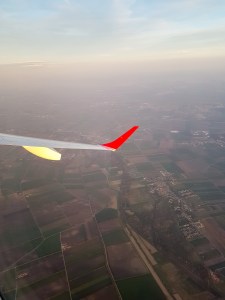 Nach dem Trubel beim Einchecken erscheint die Abflughalle fast gespenstisch menschenleer. Wir können pünktlich boarden und sitzen schließlich in einem vollbepackten Flieger, in dem sogar die Notsitze des Flugpersonals mit Passagieren besetzt sind. Zwei junge Mädchen, die vor uns in der Schlange am Schalter standen, haben vor Erleichterung Tränen in den Augen, dass sie noch einen Platz ergattert haben. Auch wenn das heißt, dass sie fast den ganzen Flug stehen müssen.