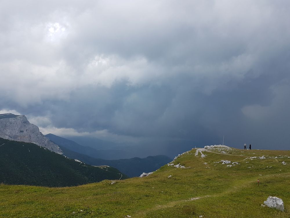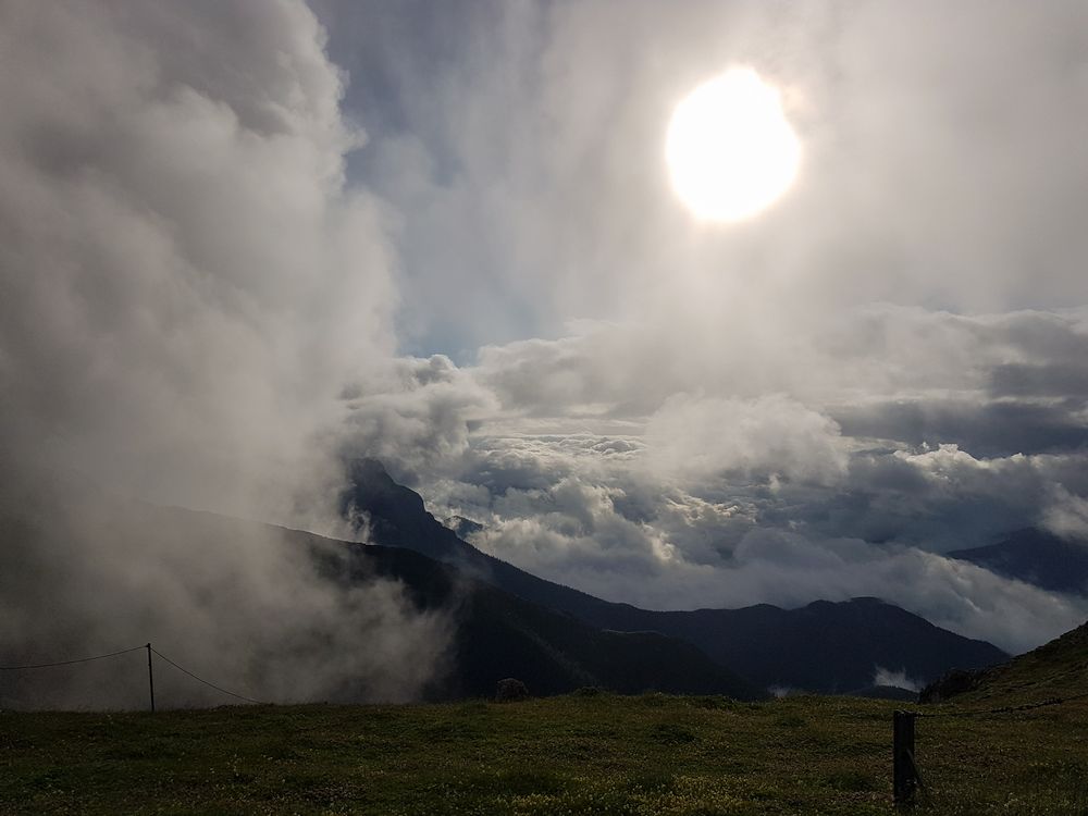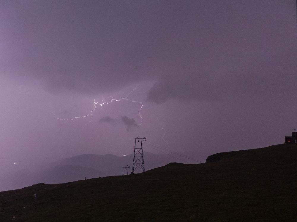 Am Abend entlädt sich ein Gewitter über uns. Dunkle Wolken, der Regen prasselt aufs Dach, der Wind pfeift um die Hütte als wollte er sie mit sich forttragen. Das Krachen des Donners wird von den umliegenden Bergen vervielfacht. Wir sitzen gebannt am Fenster und erfreuen uns am Schauspiel von Blitzen und Wetterleuchten, das uns heute geboten wird.