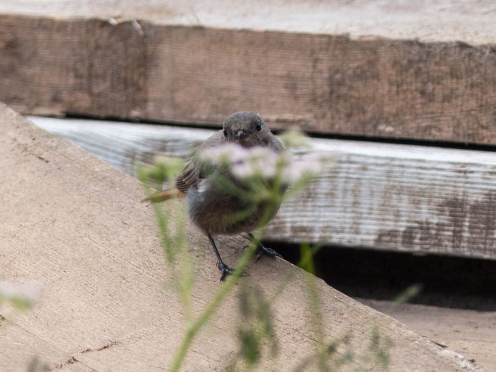 Kurz erlaube ich mir eine kleine Auszeit, um mich in unseren „Ruhepol“ hinter der Hütte zu „flüchten“: eine kleine Holzbank umgeben von verwilderten Gräsern und Holzstapeln, zwischen denen sich überraschend viele Vögel tummeln. Ein Kaffee mit Schokoriegel, das Gesicht in die warme Sonne halten, um Energie für die nächsten Stunden zu sammeln.