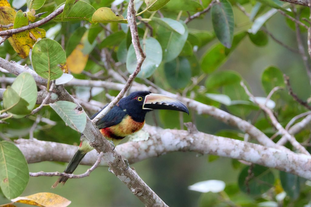 Spechte und Tukane sind geschäftig im großen Baum neben unserer Plattform unterwegs, und ein Braunhäher beäugt uns neugierig vom Geländer aus, ob es vielleicht doch etwas zum Frühstück gibt.