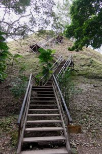 Die Schatten einiger Fledermäuse huschen an uns vorbei, als wir unseren Weg fortsetzen. Noch sind wir nicht am Ziel. Ein verwittertes Holzschild mit der Aufschrift „Mundo Perdido“ – Verlorene Welt – taucht vor uns auf und langsam hebt sich die Dunkelheit. Vorsichtig setzen wir im fahlen Licht der Dämmerung unsere Füße auf die steilen Holzstufen, die uns in die Höhe führen. Dabei bestaune ich die riesigen, fast 2.000 Jahre alten Steine der Pyramide, die passgenau aufeinander geschichtet sind.