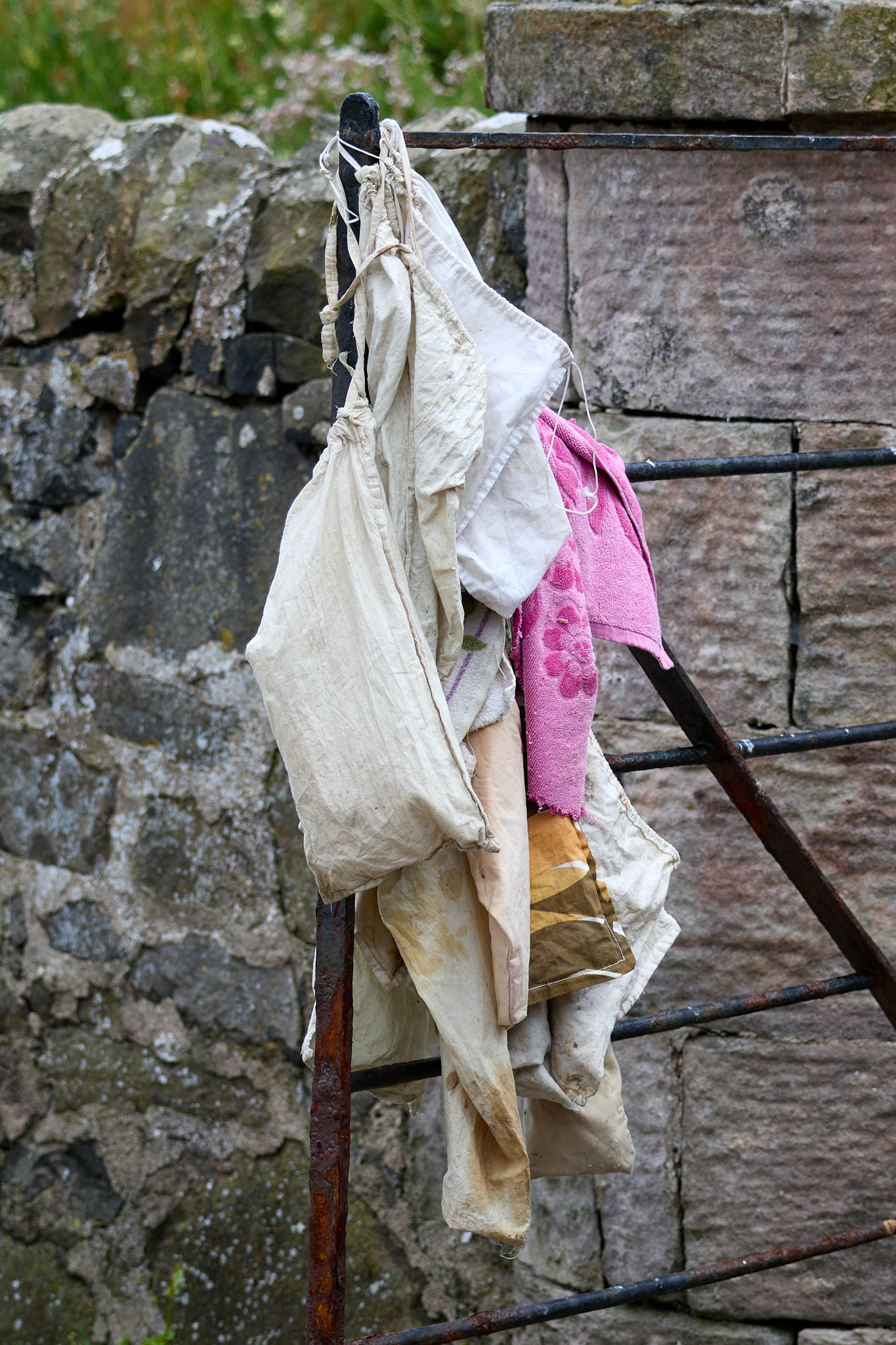 Nachdem jeder noch mit zwei Stoffsäcken ausgerüstet ist, geht es los: durch das dichte Dickicht entlang der alten Steinmauern und durch Felder von Brennnesseln, die sich entlang der Helgoländer Vogelfallen angesiedelt haben.
