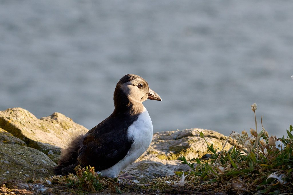Jeden Juli ist „Wanderzeit“ für die kleinen Papageientaucher: d.h. sie sind bereit für das Leben auf dem Meer. Na ja, mehr oder weniger – denn so richtig fliegen können sie noch nicht. Aber immerhin sind sie fast so groß und schwer wie ihre farbenfrohen Eltern und wenn sie glauben, dass es nun Zeit ist, verlassen sie im Schutz der Nacht ihren Erdbau und machen sich auf den Weg zum großen Wasser. Leider schaffen das nicht alle, einige verlaufen sich in den noch verbliebenen Überresten der früheren Besiedlung der Insel oder finden schlicht nicht mehr aus dem Dickicht von hüfthohen Brennnesseln heraus.
