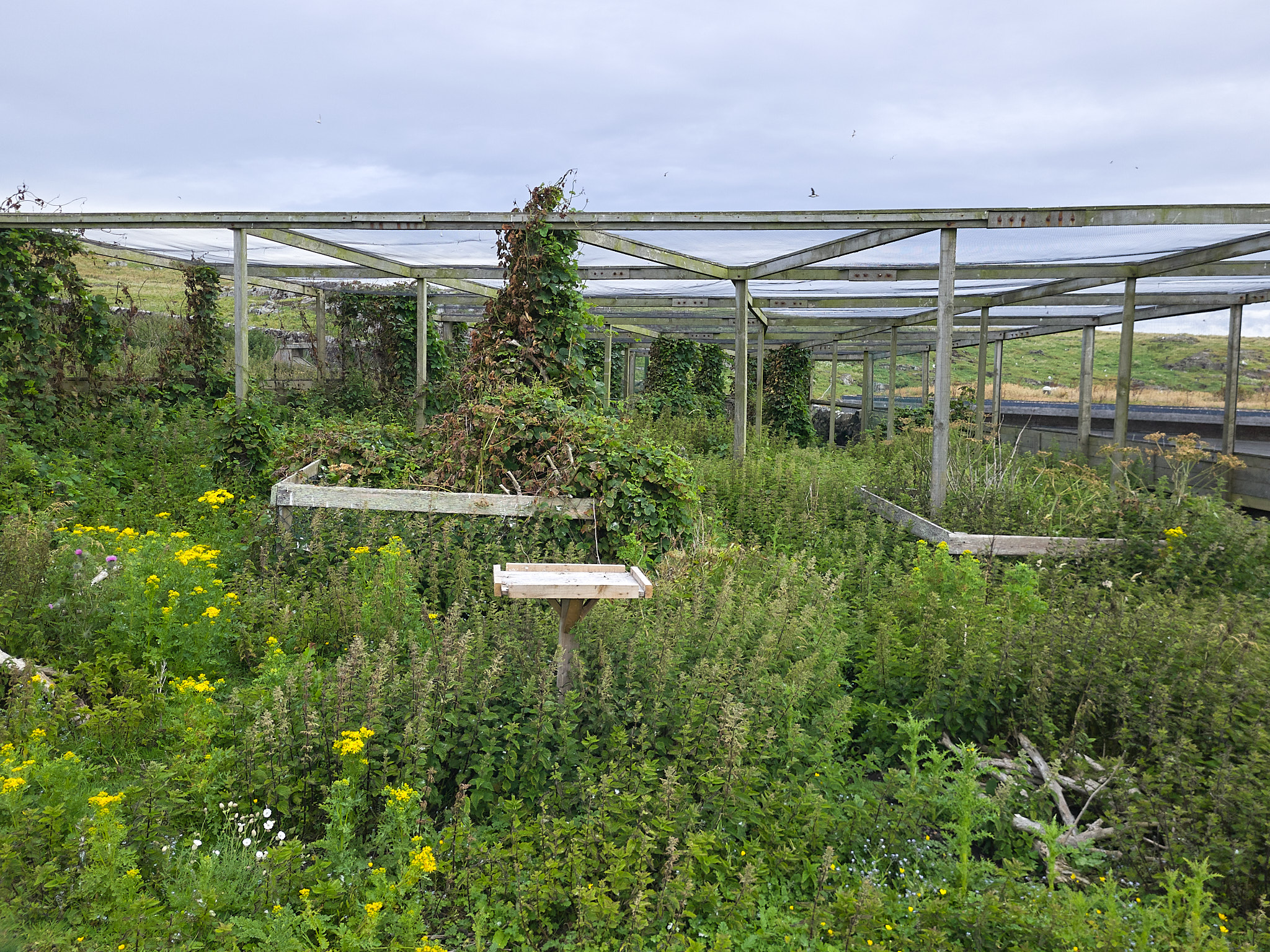 Nachdem jeder noch mit zwei Stoffsäcken ausgerüstet ist, geht es los: durch das dichte Dickicht entlang der alten Steinmauern und durch Felder von Brennnesseln, die sich entlang der Helgoländer Vogelfallen angesiedelt haben.