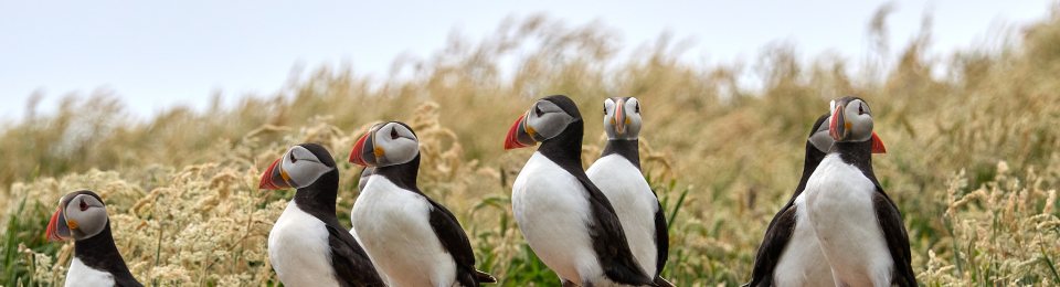 Jeden Juli ist „Wanderzeit“ für die kleinen Papageientaucher: d.h. sie sind bereit für das Leben auf dem Meer. Na ja, mehr oder weniger – denn so richtig fliegen können sie noch nicht. Aber immerhin sind sie fast so groß und schwer wie ihre farbenfrohen Eltern und wenn sie glauben, dass es nun Zeit ist, verlassen sie im Schutz der Nacht ihren Erdbau und machen sich auf den Weg zum großen Wasser. Leider schaffen das nicht alle, einige verlaufen sich in den noch verbliebenen Überresten der früheren Besiedlung der Insel oder finden schlicht nicht mehr aus dem Dickicht von hüfthohen Brennnesseln heraus.