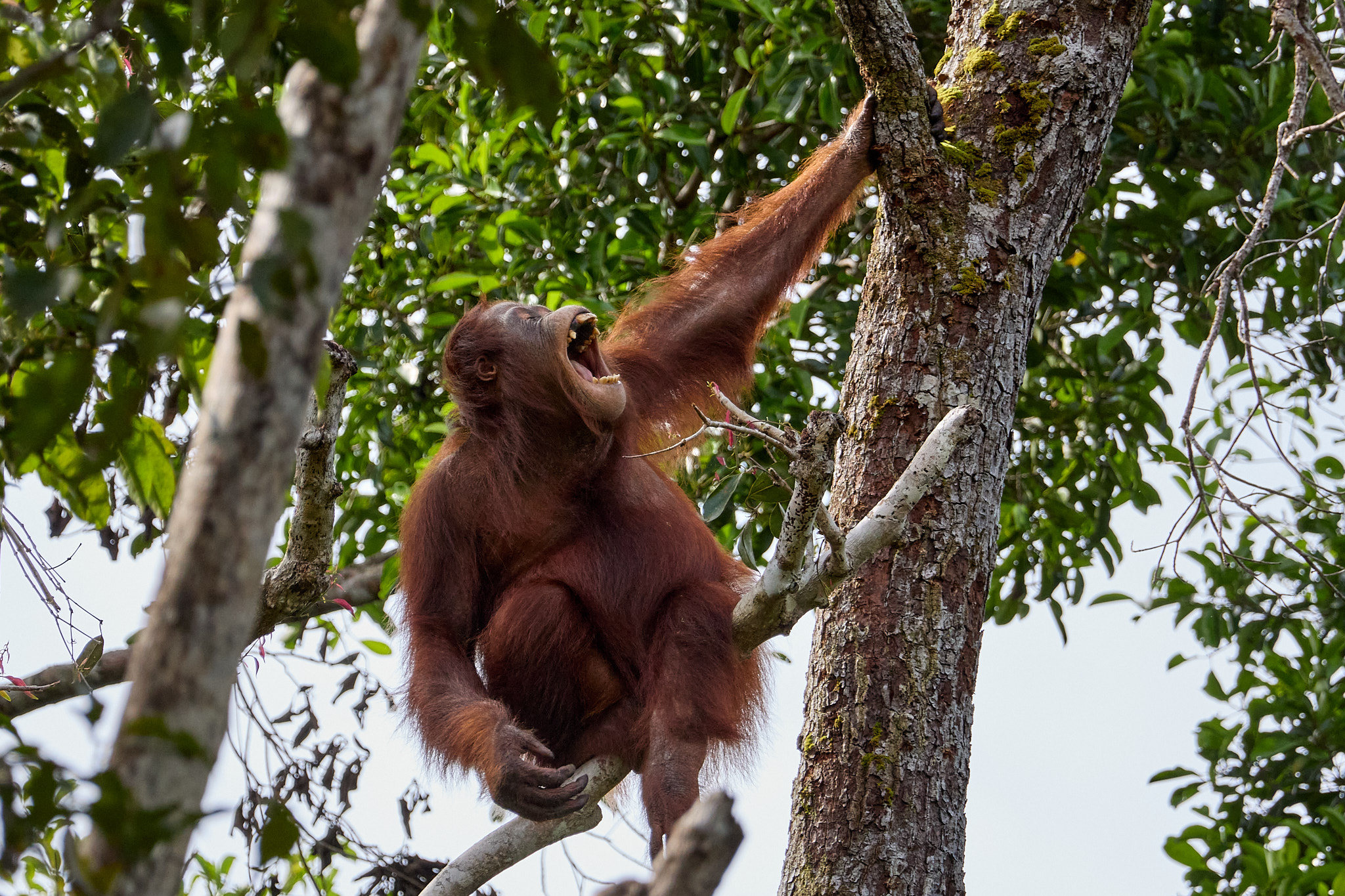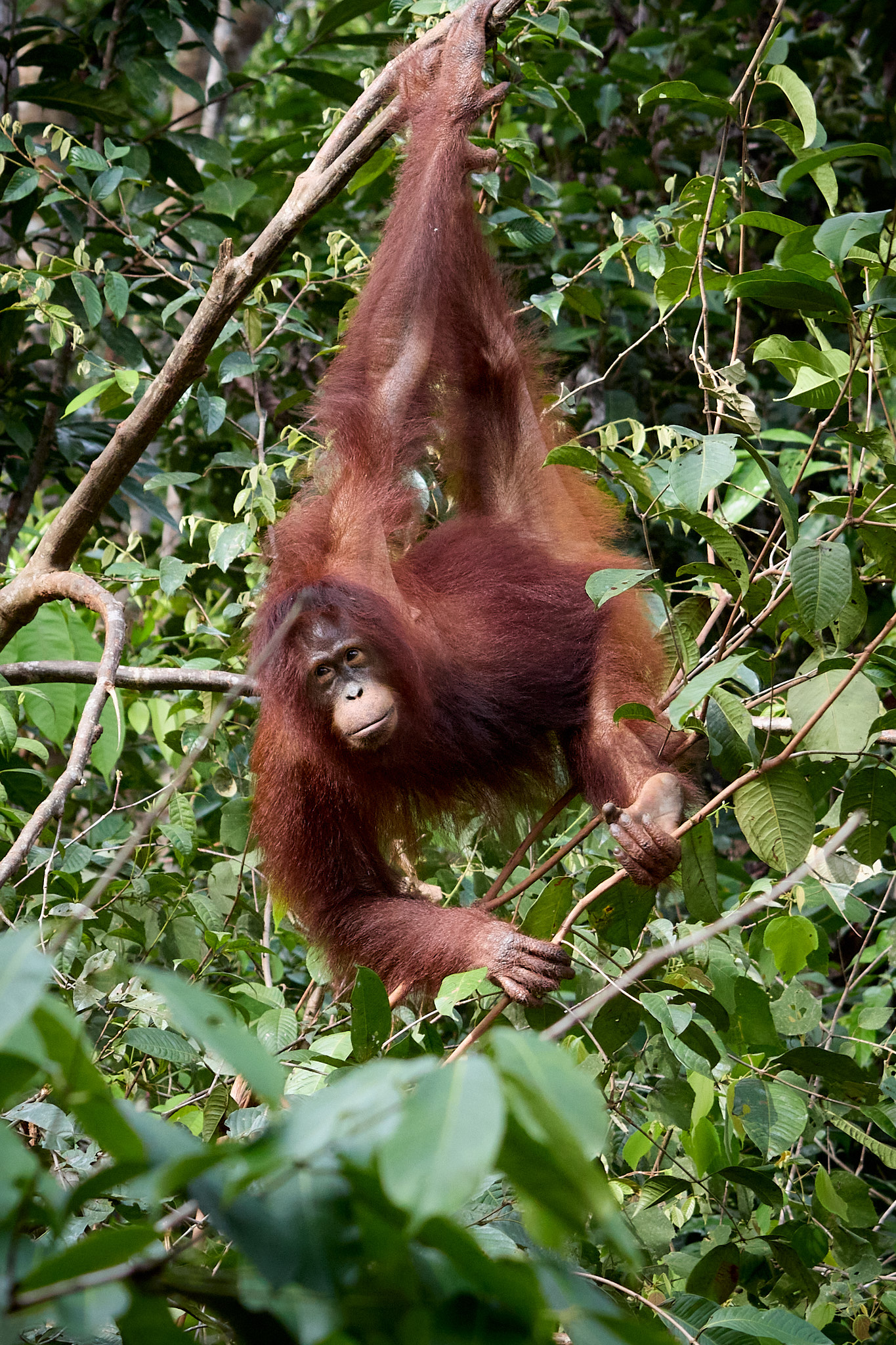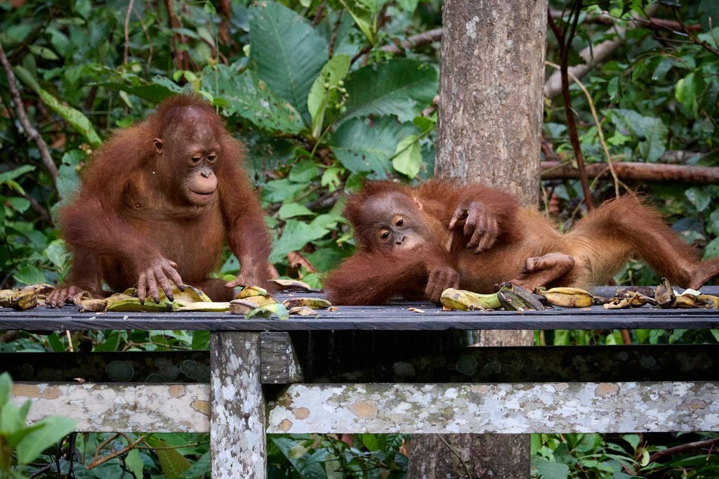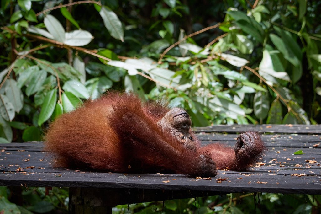 Es ist die zweite Nacht im Tajung Puting Nationalpark und heute werden wir den Waldmenschen ein letztes Mal unseren Besuch abstatten. Schon gestern konnten wir die rothaarigen Akrobaten der Bäume bei zwei Fütterungsstationen beobachten, und ich freue mich, dass wir heute noch mal die Gelegenheit haben werden.