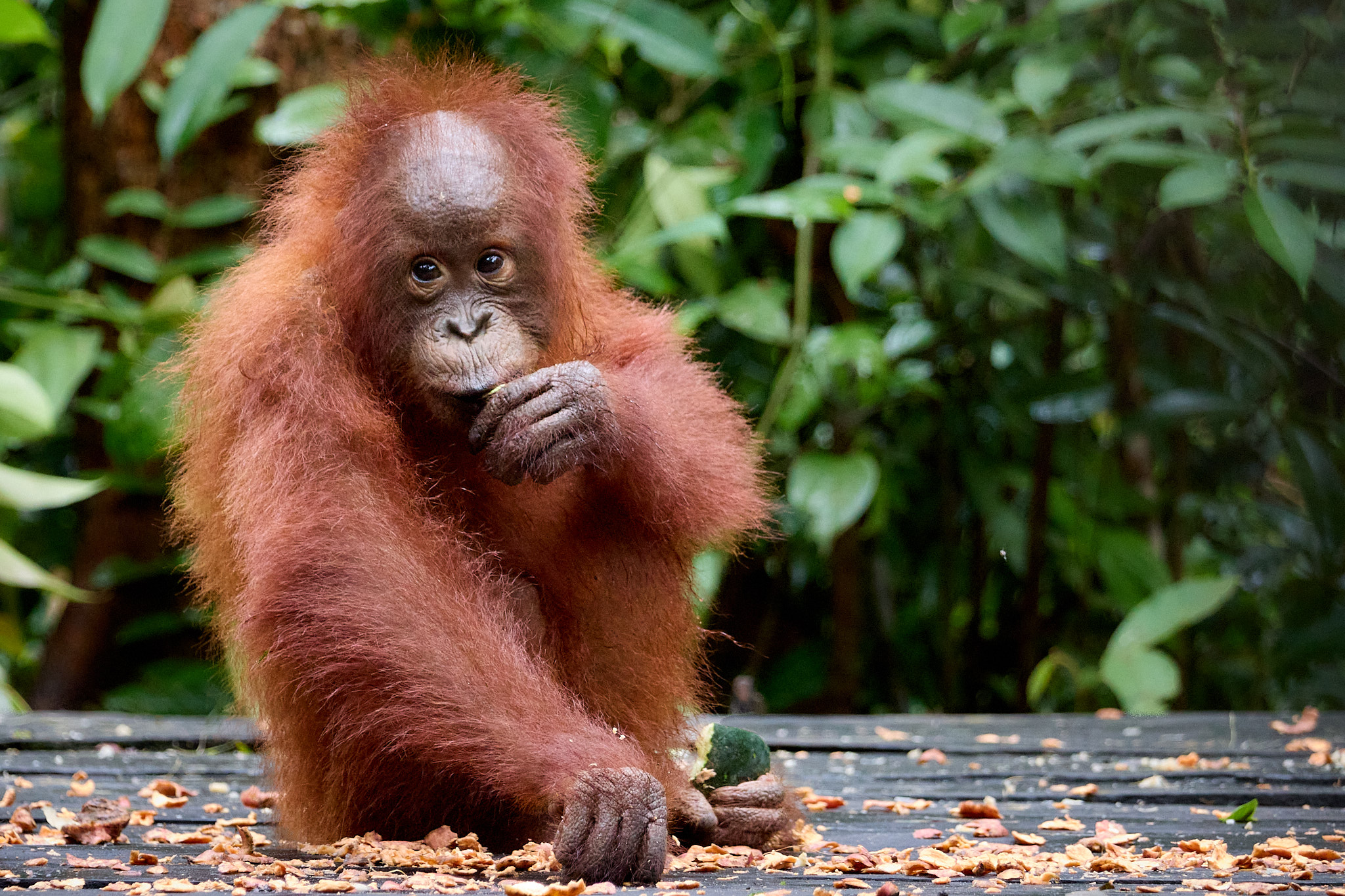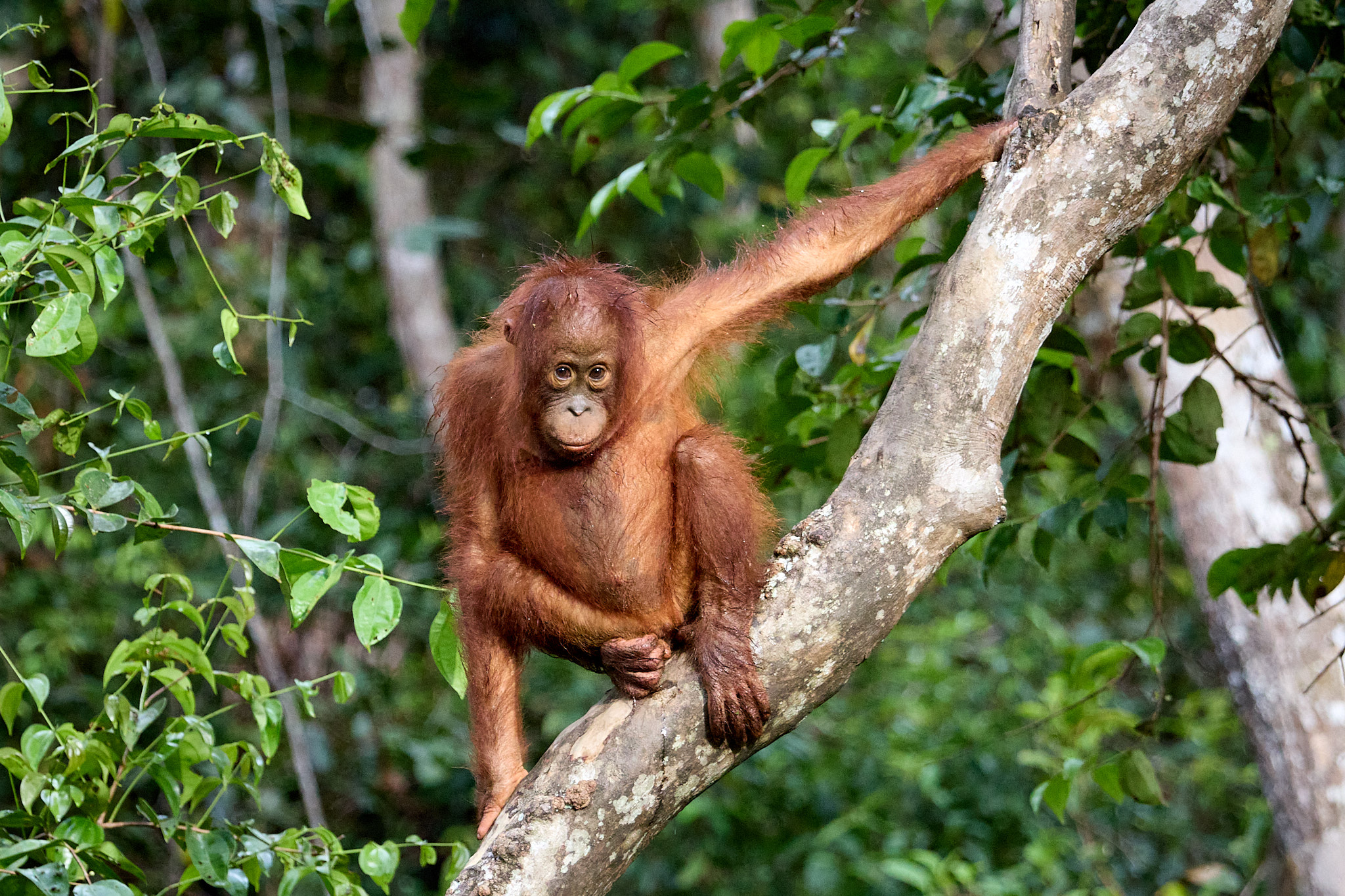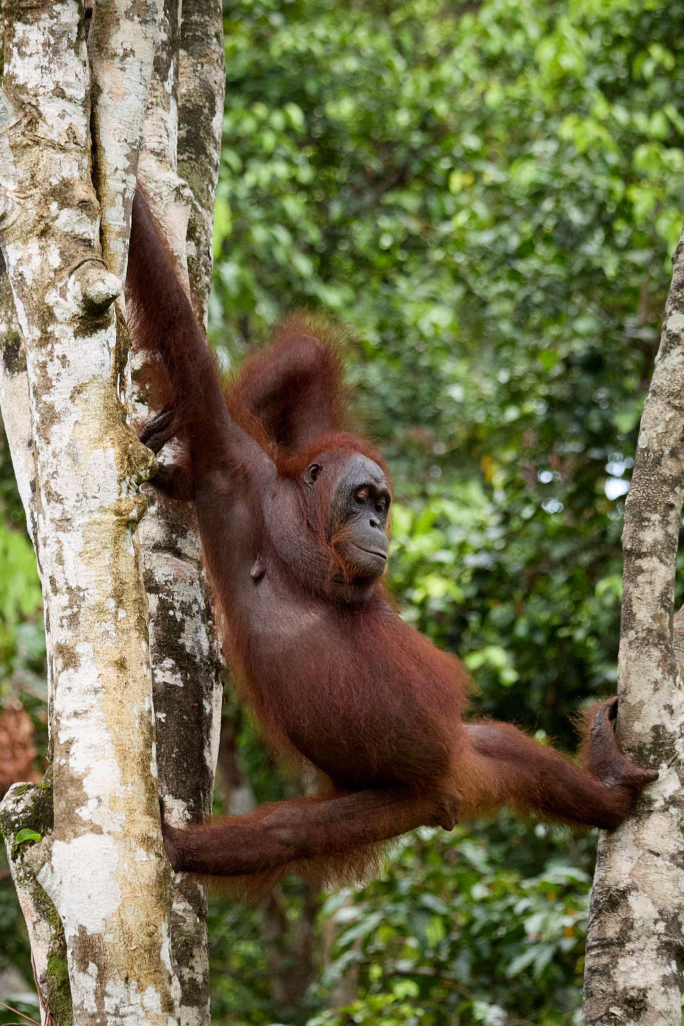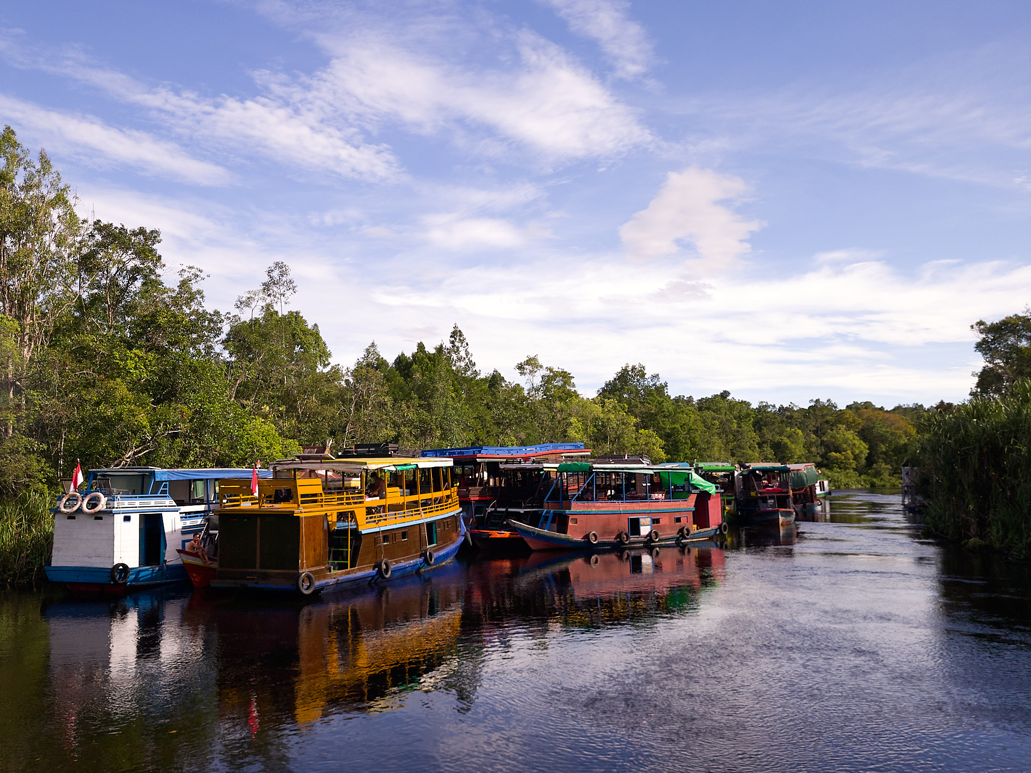Es ist die zweite Nacht im Tajung Puting Nationalpark und heute werden wir den Waldmenschen ein letztes Mal unseren Besuch abstatten. Schon gestern konnten wir die rothaarigen Akrobaten der Bäume bei zwei Fütterungsstationen beobachten, und ich freue mich, dass wir heute noch mal die Gelegenheit haben werden.