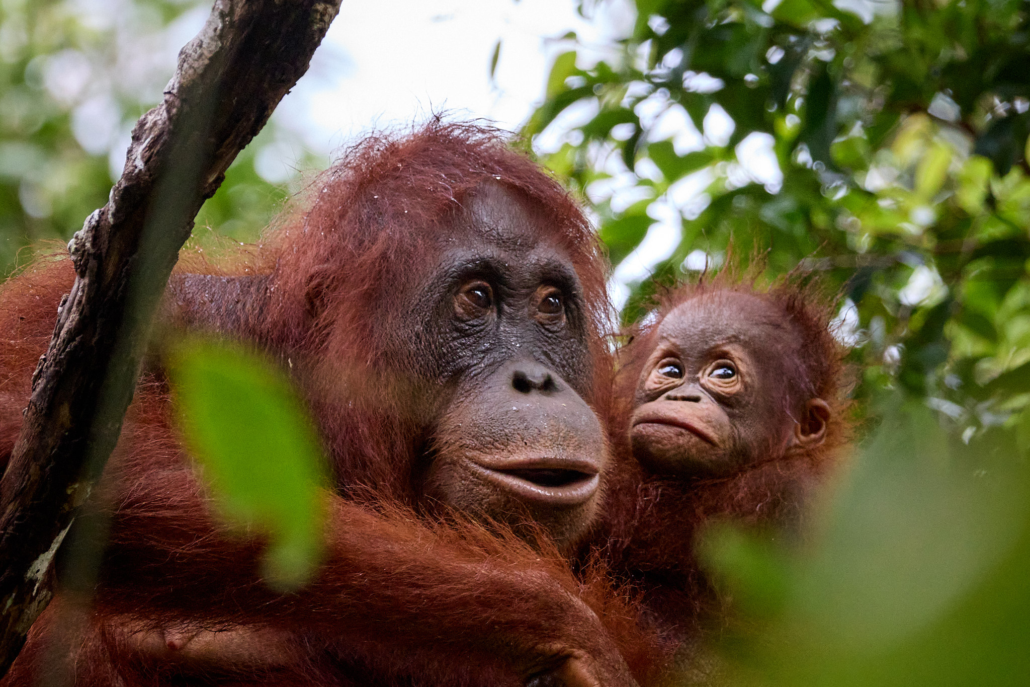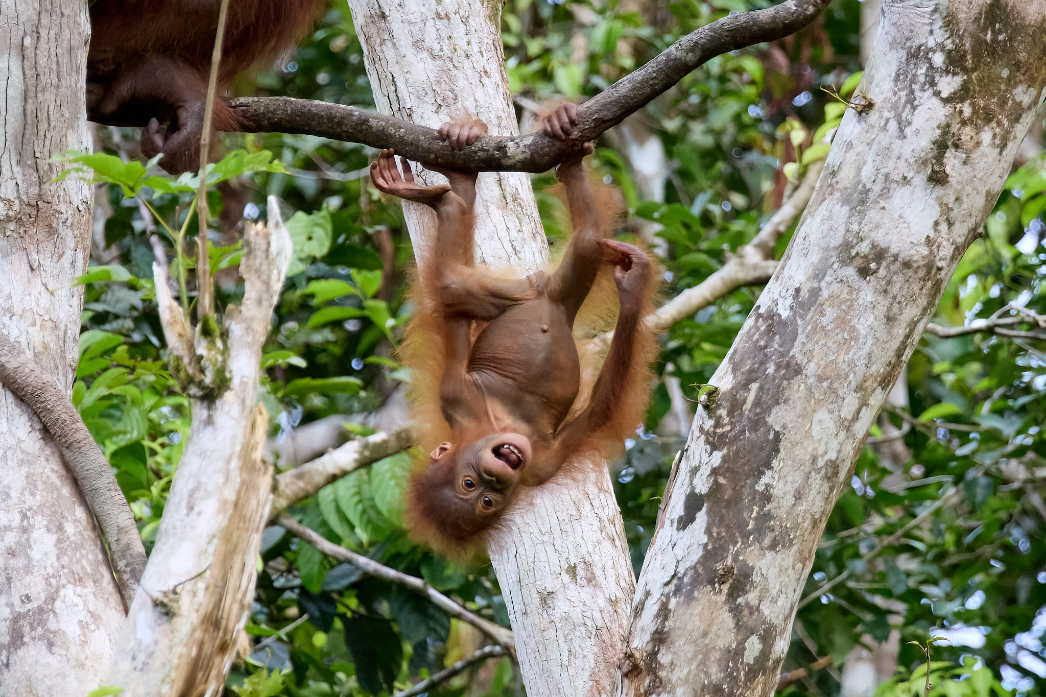 Am schönsten sind allerdings die Mütter mit ihrem Nachwuchs zu beobachten, der sich im dichten Fell festkrallt, aber ab und zu schon einen kleinen Solo-Ausflug wagt. Kindliche Gesichter, die immer die Mama im Blick haben, auch wenn sie kurz die Umgebung erkunden oder kleine Purzelbäume in den Ästen vollführen. Liebevoll beobachtet von der Mutter, die auch mal kurzen Prozess macht und den kleinen Ausflügler wieder zurück in ihre Obhut holt.